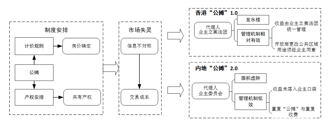 图1 内地“公摊”2.0版本与香港“公摊”1.0版本的比较。资料来源:作者自绘。