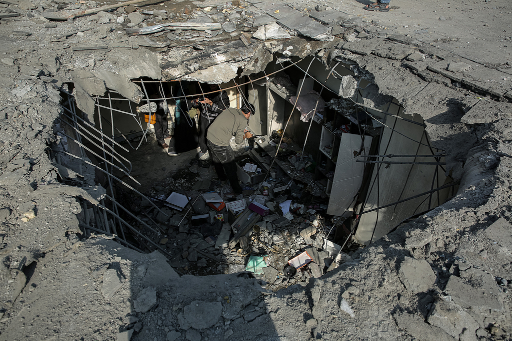 当地时间2025年10月16日,阿富汗喀布尔,人们查看一栋据称在巴基斯坦空袭中受损的建筑。 视觉中国 图