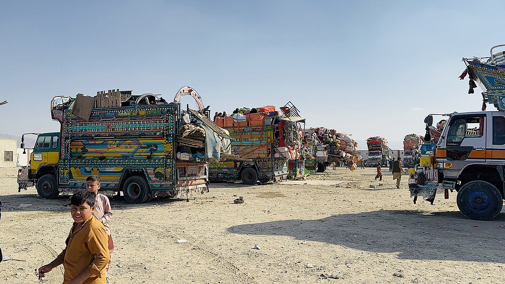 当地时间2025年10月26日,巴基斯坦查曼,阿富汗难民在巴阿边境准备返回阿富汗。 视觉中国 图