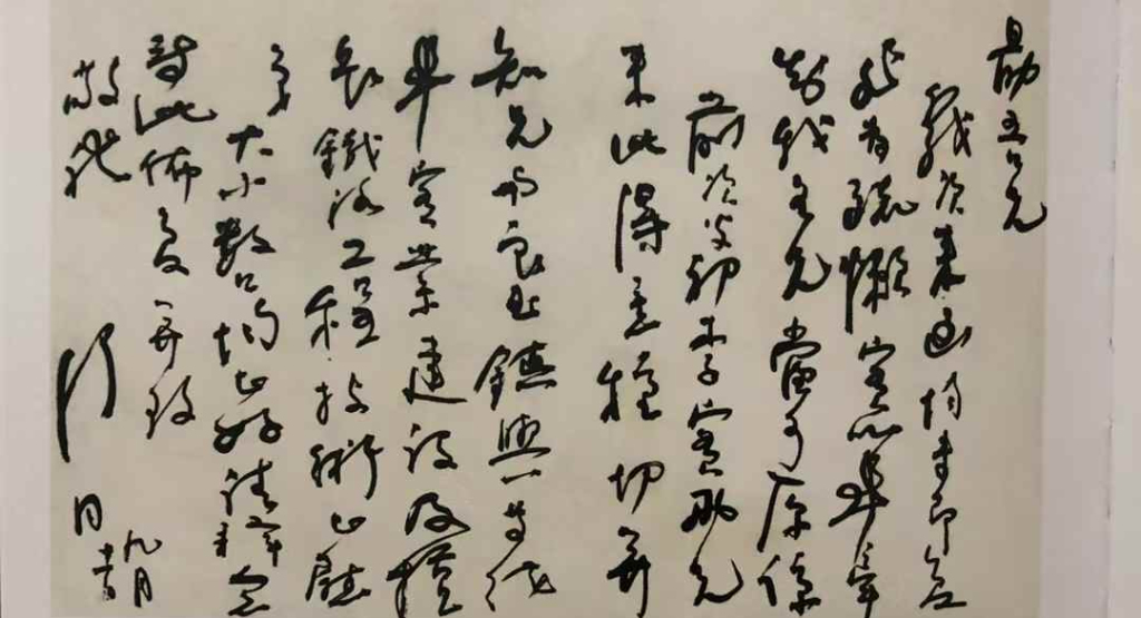 然而,真正的艺术家从不甘心终生为传统的囚徒。中年以后,舒同开始了一场静默而决绝的“变法”。他巧妙地将颜体的骨力融入草书的流变之中,创造出独具特色的“舒体”草书。这种转变绝非突兀的断裂,而是水到渠成的升华——颜真卿《祭侄文稿》中那压抑已久的情感暗流,终于在舒同的草书中找到了奔泻的出口。