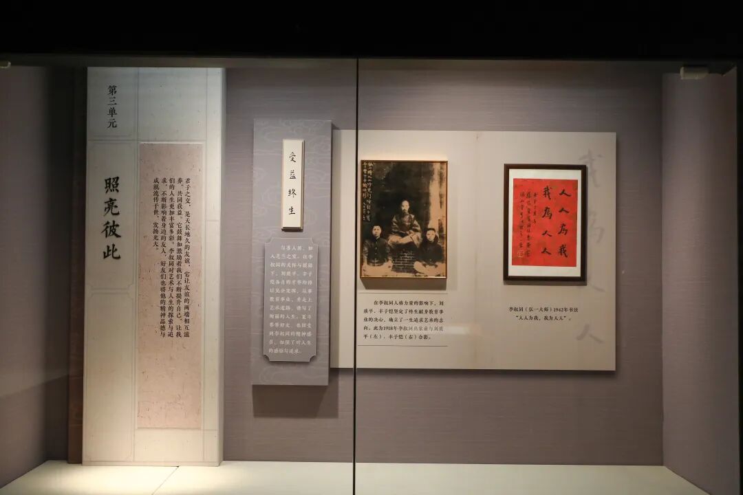 第三单元“照亮彼此”则体现李叔同在艺术和人格修养上对友人的深远影响,以及友人对这位艺术先驱和佛门高僧的深切纪念。