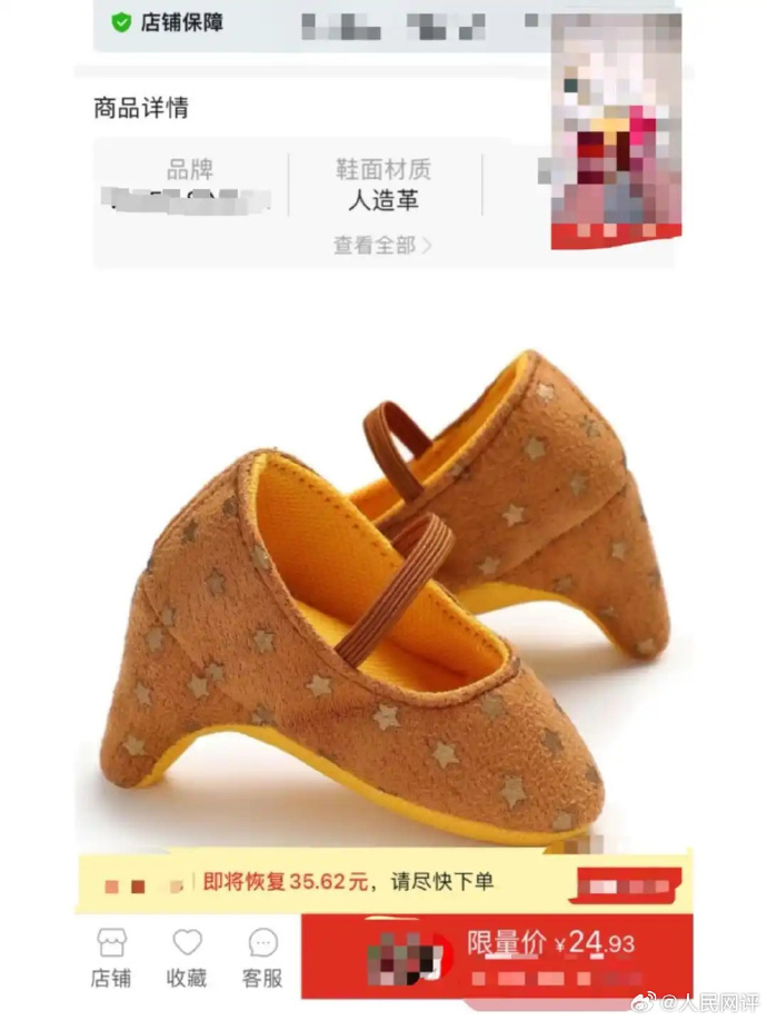尽管商铺客服辩称“用作装饰,不是真鞋”,但从商品配文“1岁宝宝人生第一双高跟鞋”看,“婴儿高跟鞋”不像是简单的装饰品。再加上造型很容易让人联想到“三寸金莲”,引发网友质疑,便是在所难免。