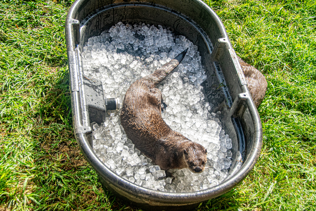 在美国得克萨斯州休斯顿,随着气温飙升,动物园里的动物们正在避暑。