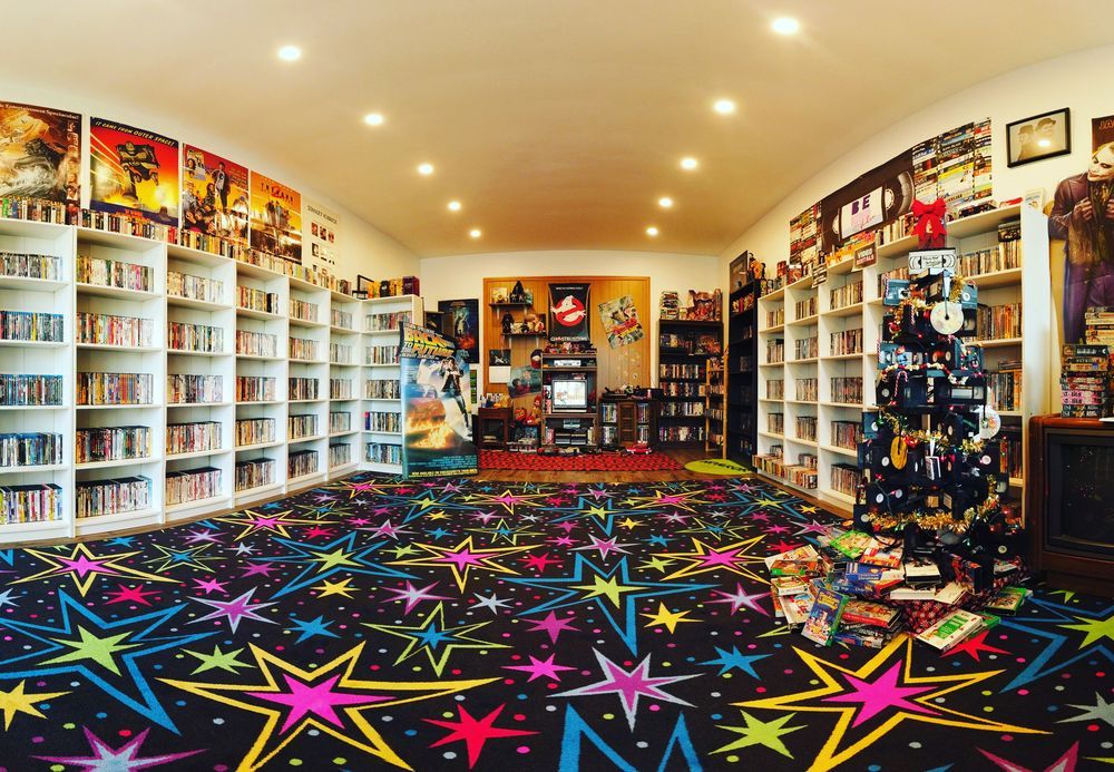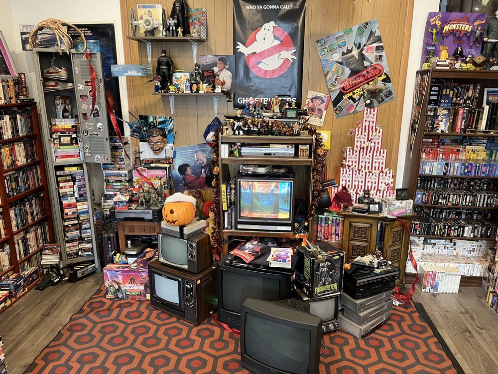 店中装饰有《闪灵》地毯图案的恐怖类型片专区(照片来自点评网站Yelp)