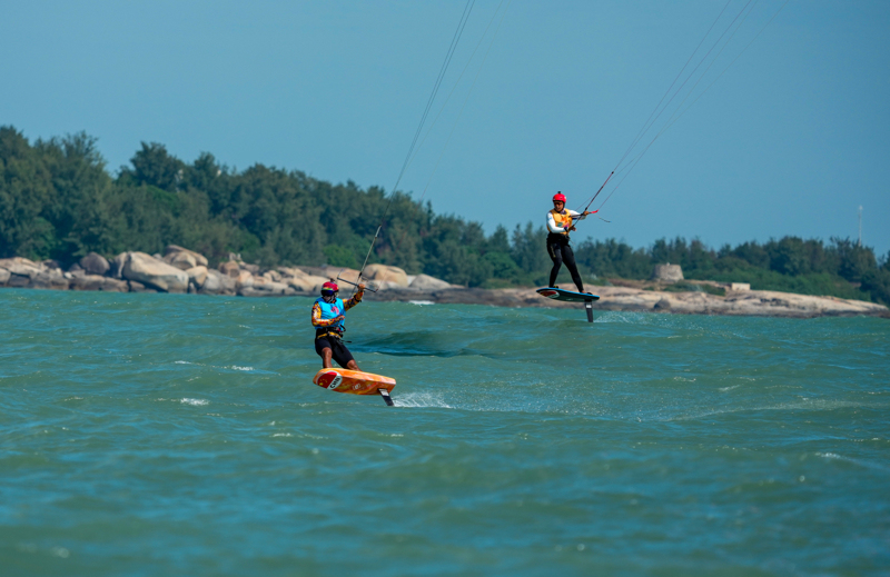 如果说,张东霜的成功卫冕代表着老将的坚守;那么,19岁上海小将黄齐滨在男子水翼风筝板级决赛中的惊险胜出则代表着一种年轻人的敢打敢拼。