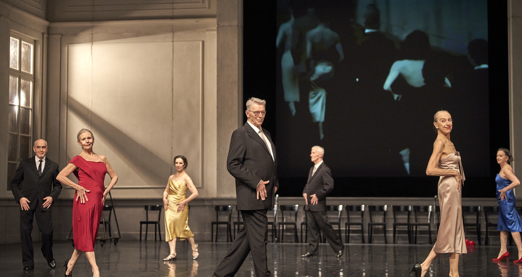 舞台上,其余11位不在场的人在主角们鲜活的记忆中度过了每一秒,或者在投影和舞台事件的互动中,填补了他们年长搭档留下的空白。舞者们与年轻时的自己共时表演的精准度令人着迷。