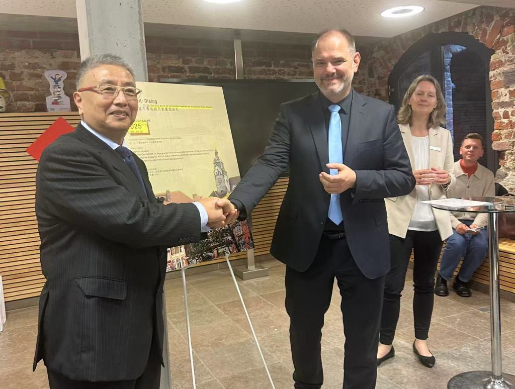 施特拉尔松德市文化与历史遗产管理局局长与策展人邹德怀合影