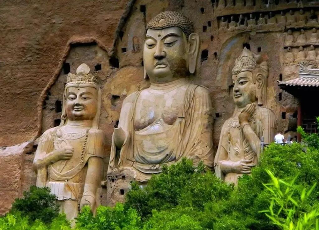 麦积山第13窟 华严三圣 文殊菩萨(左) 毗卢遮那佛 普贤菩萨(右)