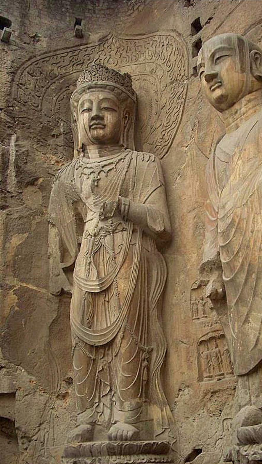 普贤菩萨站像,石雕盛唐,672-675年高约14m, 洛阳龙门石窟,奉先寺