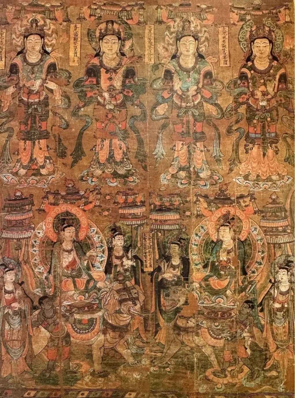 英国国家博物馆藏 唐 咸通五年(864年) 绢本设色 四观音文殊普贤图