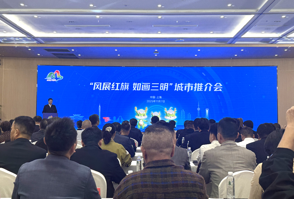 2025年11月7日,上海,福建省三明市举办“风展红旗 如画三明”城市推介会。 记者 陈逸欣 摄