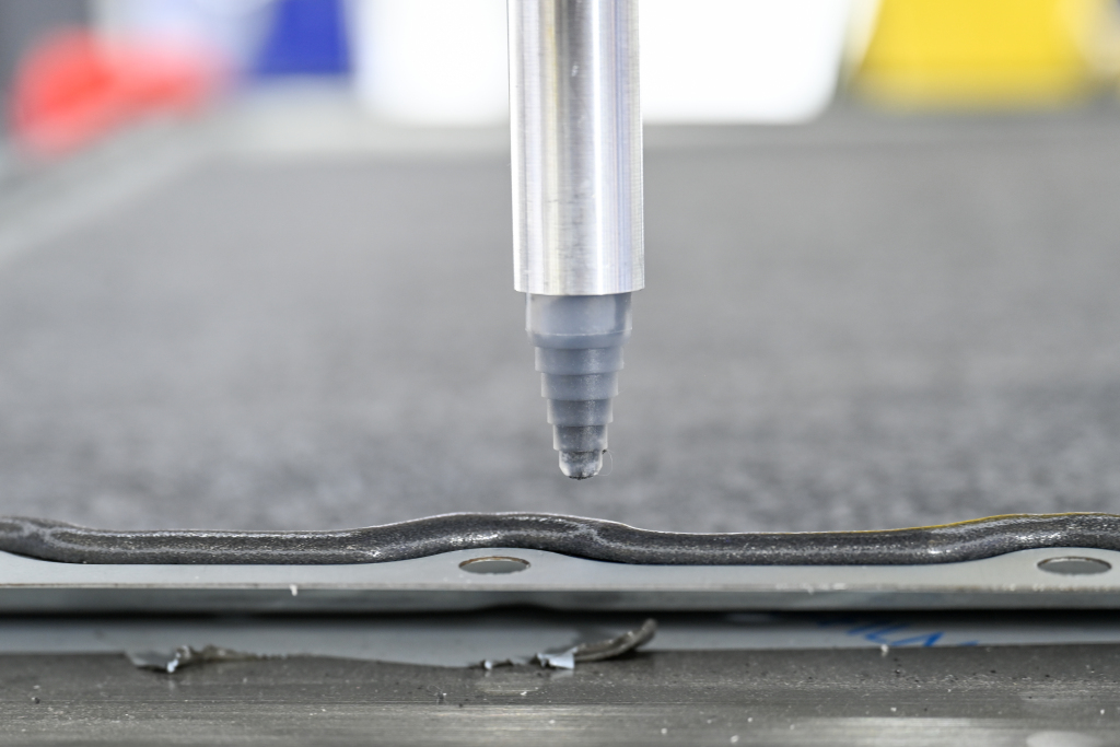 新能源汽车电池包密封胶自动化解决方案:通过机械臂协同3M™ SZ1000电池包密封胶实现自动化点胶与可重复开合密封,提升电池包的可维护性。该密封胶专为纯电和混动车型设计,支持常温和高温固化,具备原位固化特性,满足密封及阻燃要求,涂胶速度达每秒200mm,兼具耐老化与机械耐久性,确保振动测试后可靠密封。记者 朱伟辉 图