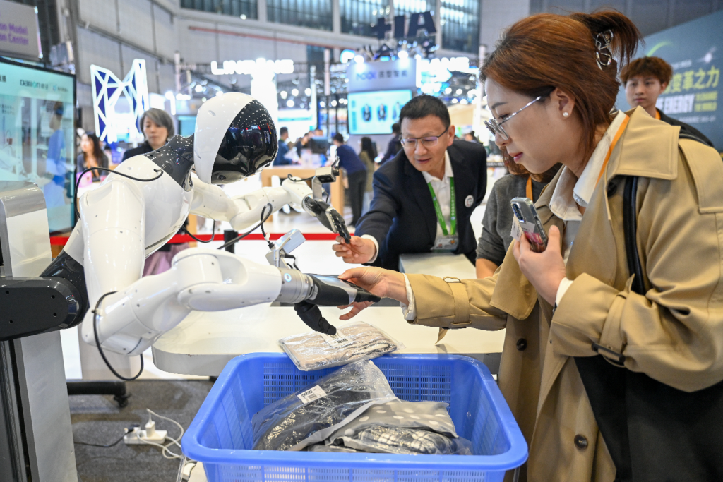 从第五届进博会开始设置的人工智能专区,围绕运动、办公、工业、教育、艺术、餐饮、娱乐7大应用场景,探索人形机器人的实际应用、展示全球人工智能领域前沿技术与产业趋势。这里不仅是尖端科技的“超级秀场”,更是绿色转型的“创新引擎”。