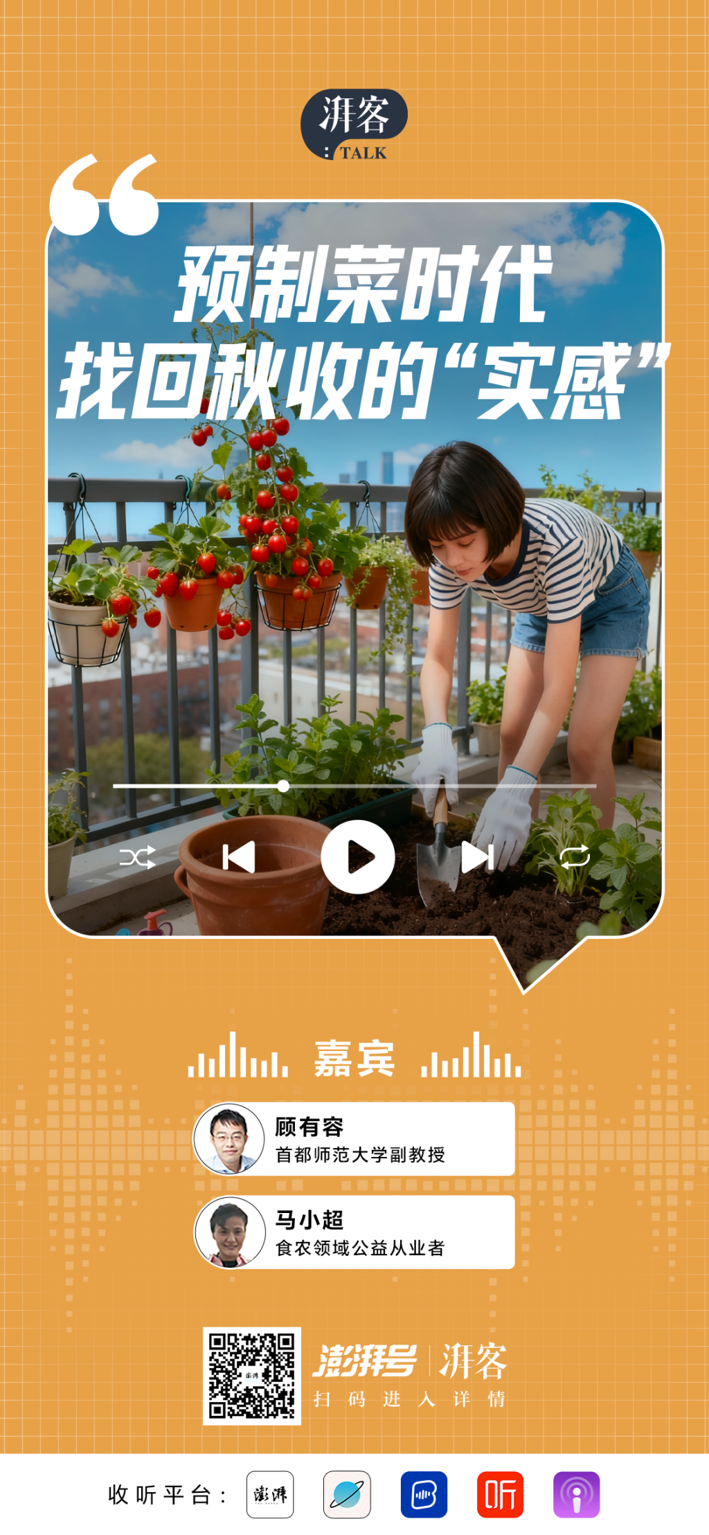 本期《湃客Talk》邀请植物学家顾有容与食农实践者马小超,一起聊聊秋收背后的品种迭代、文化记忆与土地情感,探讨我们与食物、与自然之间那些“剪不断、理还乱”的深层联结。