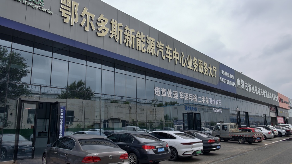 在康巴什区北纬二路,占地7.5万平方米的“一站式”新能源汽车枢纽——鄂尔多斯新能源汽车中心正快速运转。