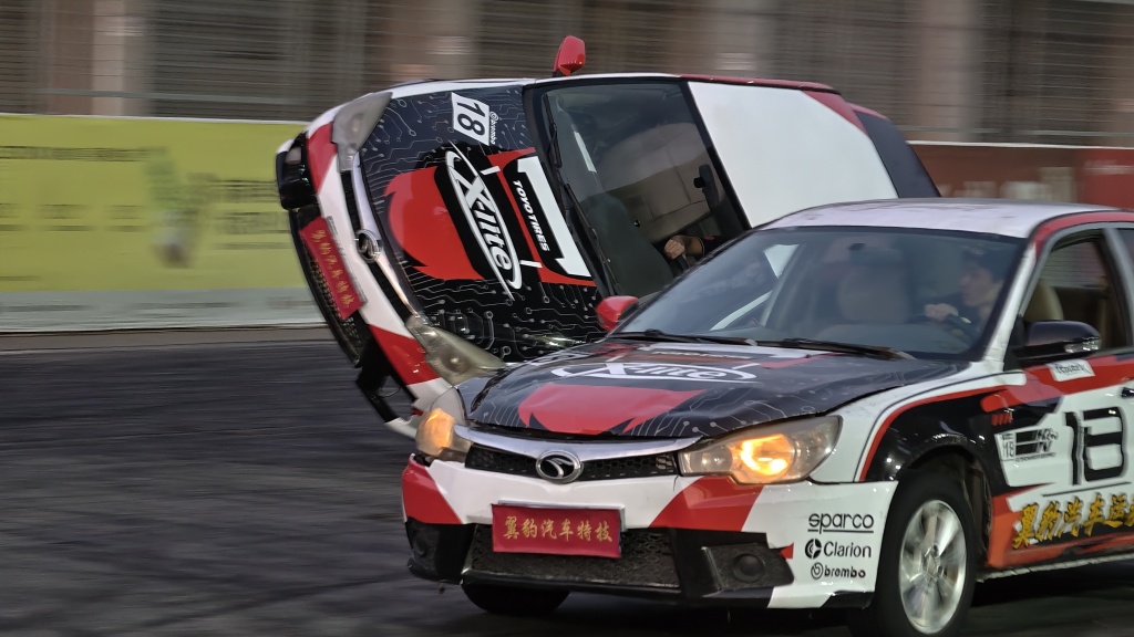极速漂移时轮胎与地面摩擦产生的青烟缭绕,360°侧行时车身与地面近乎平行的惊险姿态,同步8字漂移时两车精准交错的默契配合,甚至还有车手从天窗探出身体的“空中造型”……每一个动作都凝聚着车手对机械的极致掌控,和对物理极限的勇敢挑战。