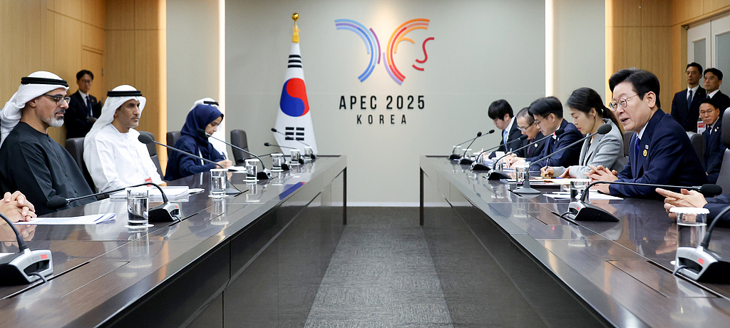 除多边会议外,李在明还开展了一系列双边和经贸交流活动。据韩国政府消息,上午他会见了阿联酋阿布扎比王储谢赫·哈立德·本·穆罕默德。双方一致同意进一步加强在防务、投资、能源、高科技及文化等领域的合作,李在明还期待在不久的将来与阿联酋总统穆罕默德亲自会面,继续就两国“特殊战略伙伴关系”的发展方向进行深入探讨。下午,他与国际货币基金(IMF)总裁克里斯塔利娜·格奥尔基耶娃耶会晤,讨论了韩国经济的复苏与未来增长战略。