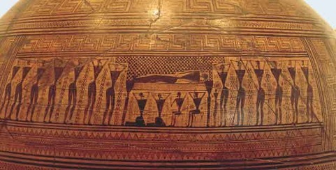 女性哀哭者与停尸场景,丧葬哀歌双耳几何瓶,约公元前760-公元前750年,雅典国家博物馆