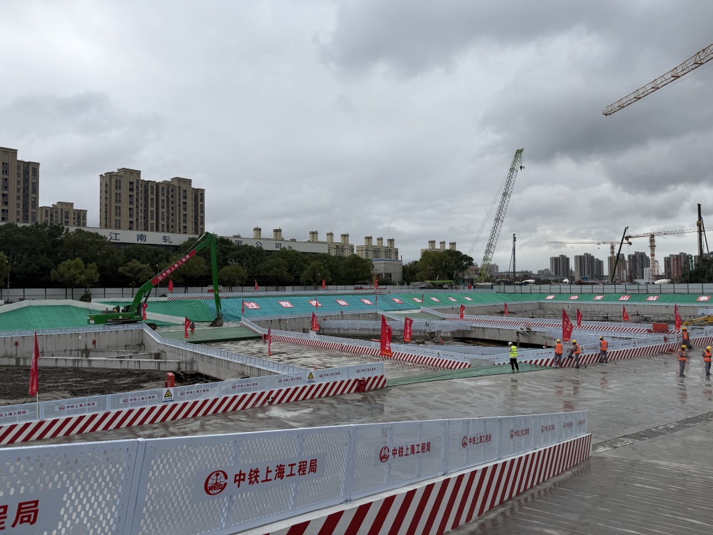 当天,记者在高铁宝山站东咽喉区施工现场看到,相关工程正加紧建设。中铁上海工程局集团有限公司新建上海至南京至合肥高速铁路上海宝山站站房Ⅲ标项目经理部项目经理杜斌介绍,上海宝山站基坑共分为三大区域,站房区、东咽喉区、西咽喉区。“目前宝山站的东咽喉区已经具备土方开发条件,已经完成了表层土的土方开挖,开始进入基坑的实质性施工阶段,其次,主站房区域即将进入土方开发阶段,各项目标节点正在按照目标稳步推进。”杜斌还介绍了施工的难点,正常车站地下开挖深度在3米-5米,而宝山站地下开挖深度在15.5米-19.6米,基坑安全要求更高,出土方量更大。