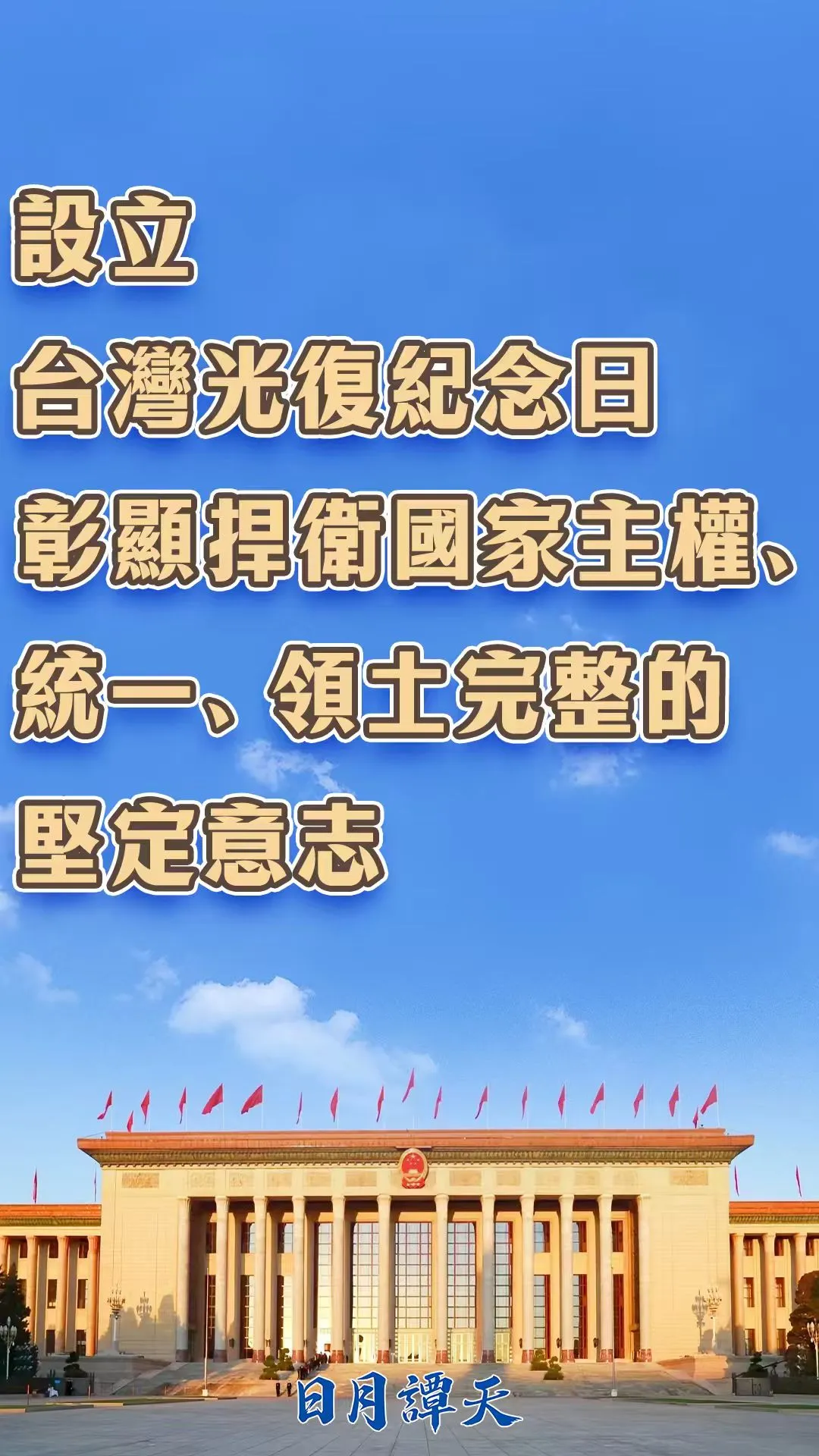 (原题为《日月谭天 | 设立台湾光复纪念日彰显捍卫国家主权、统一、领土完整的坚定意志》)