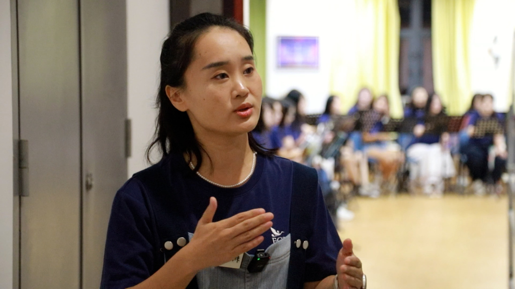 刘瑞菡坐在靠近门口的位置,她是爱歌女高声部的一位成员,也是爱歌2016年6月成立时的创团成员之一。