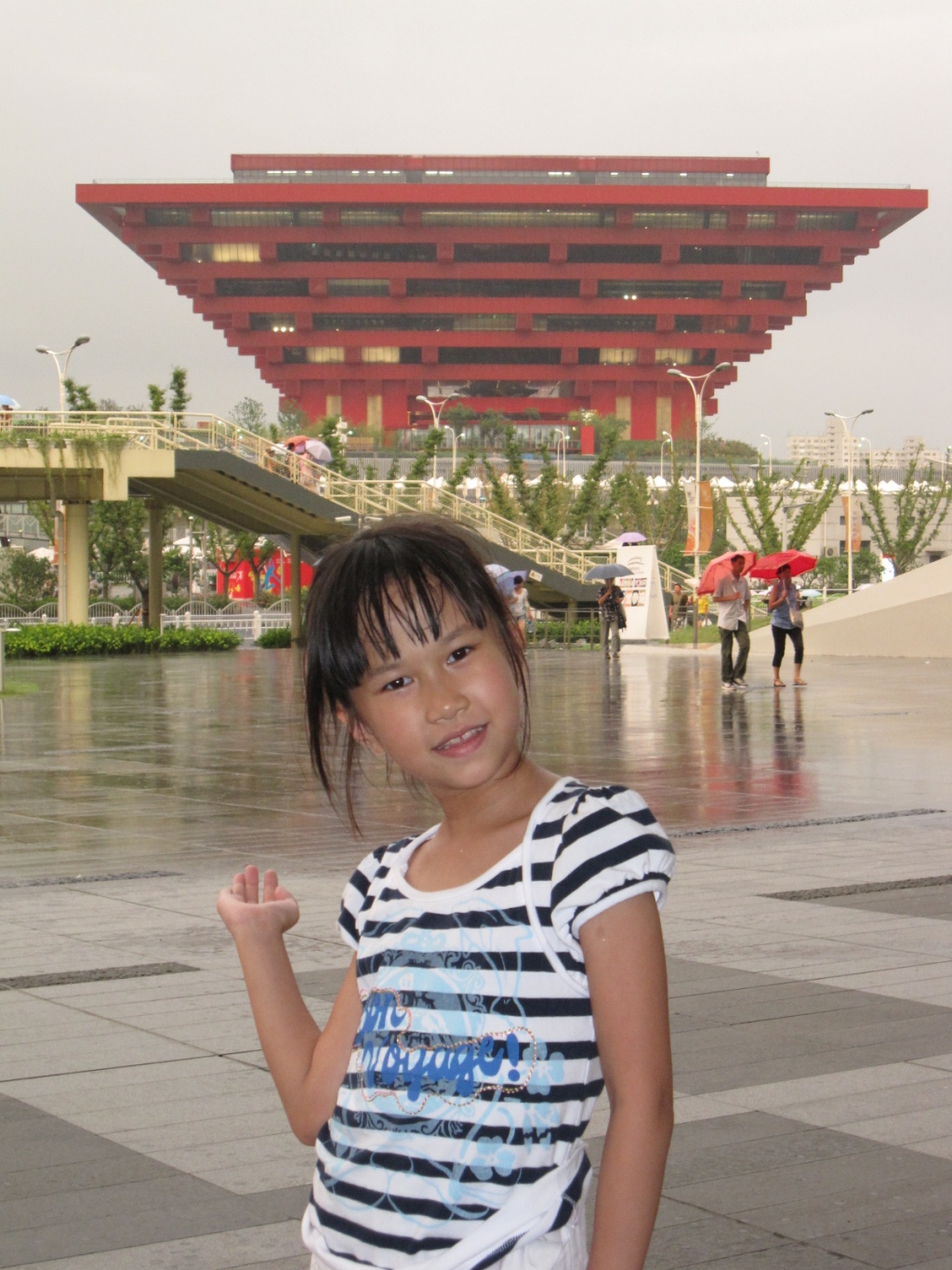 2010年,下雨天,童思涵在上海世博会中国馆前留影。图片由上海世博会博物馆与受访者提供