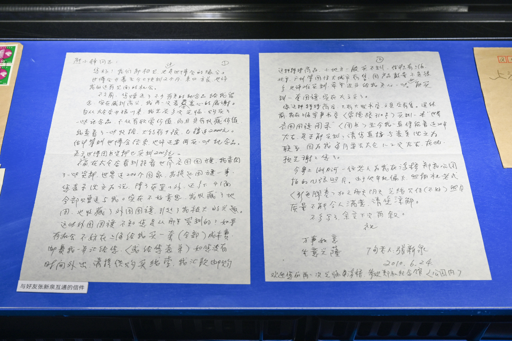 2025年10月31日,“寻光2010”展览现场,太仓退休老人张新全与熊小锋的通信。记者 吴栋 图