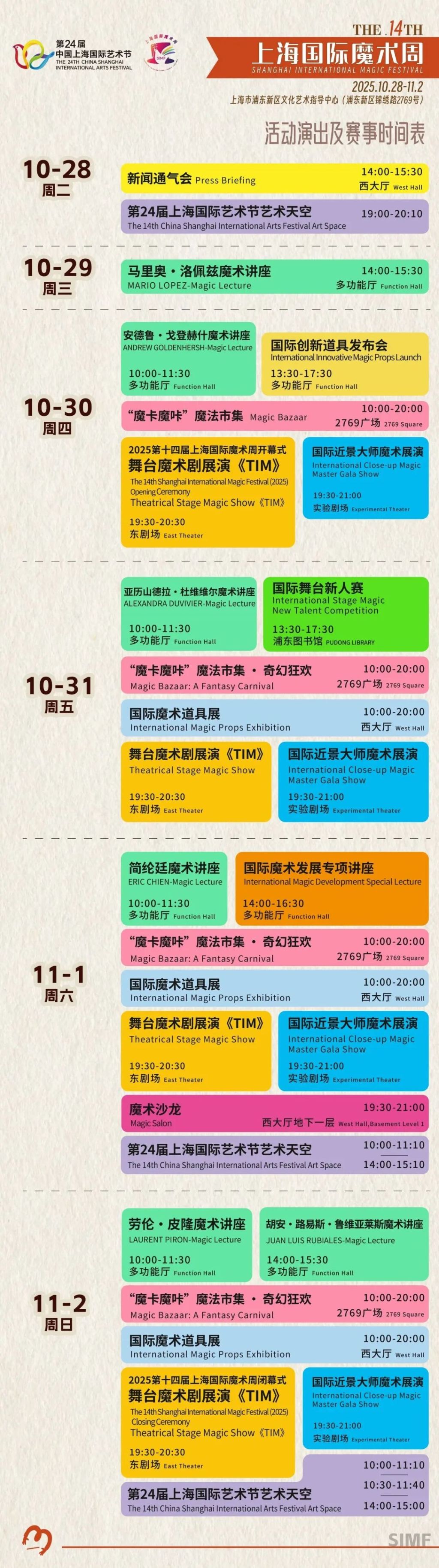 作为中国上海国际艺术节“专业展演板块”的重要活动,第十四届上海国际魔术周将于2025年10月28日至11月2日在上海市浦东新区文化艺术指导中心举行。
