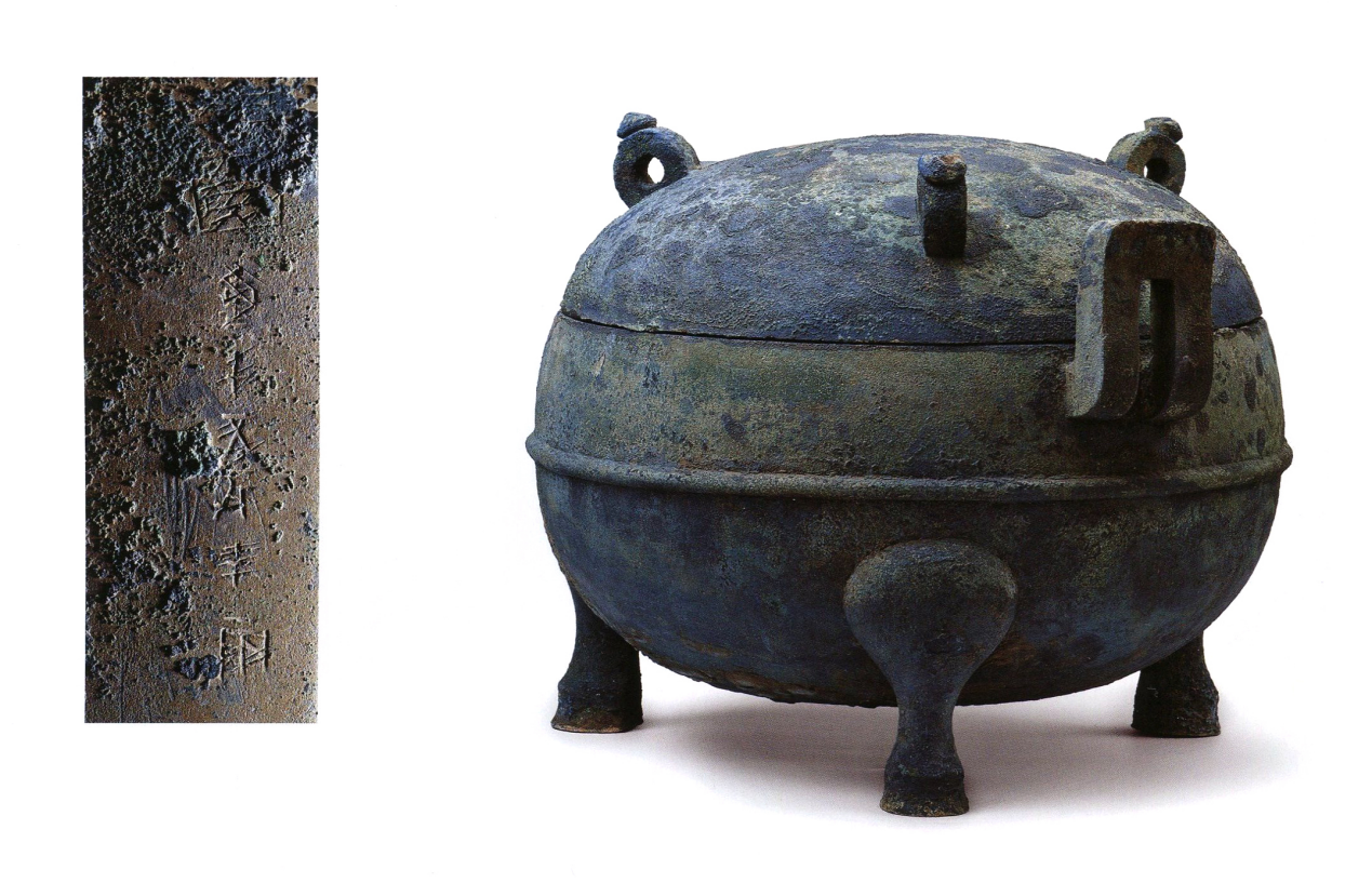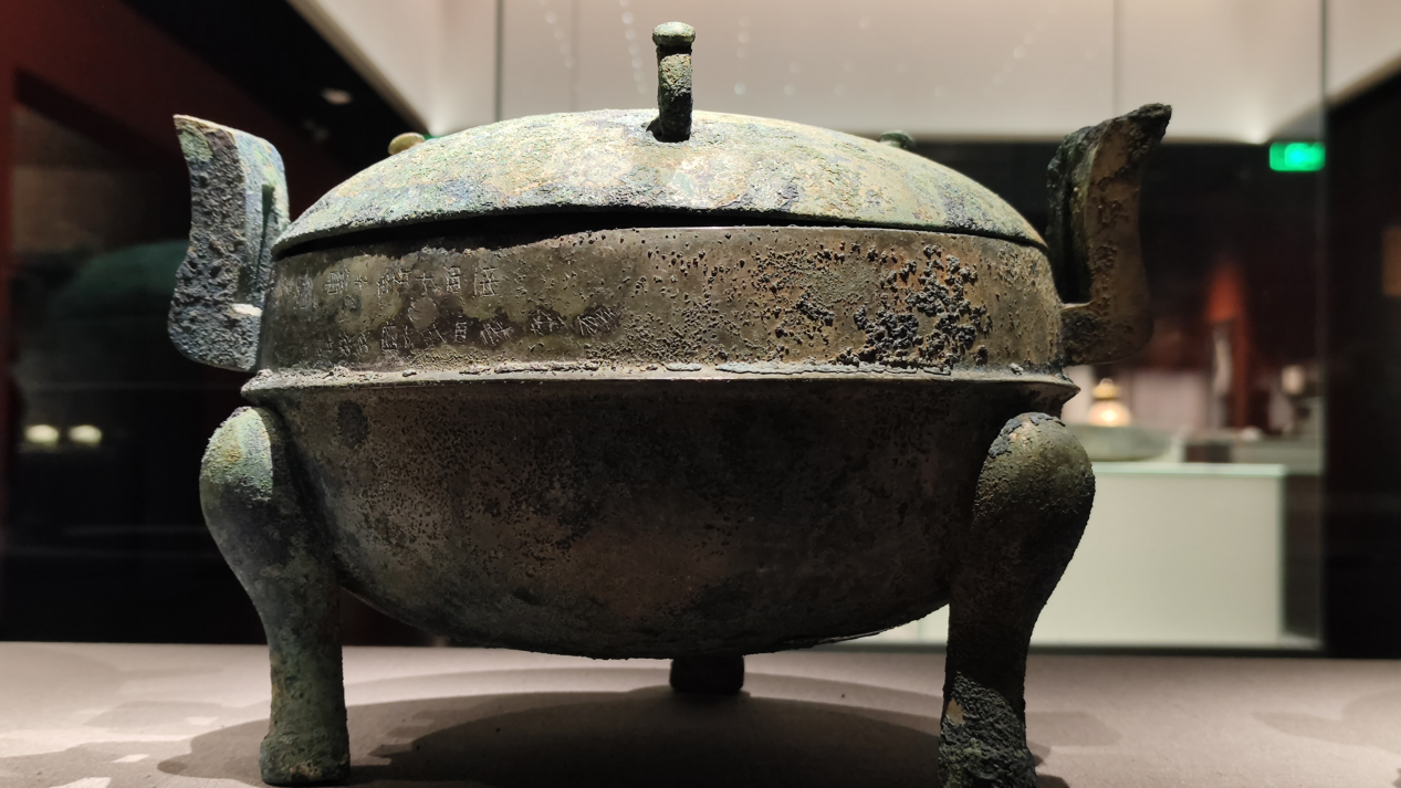 “上邳侯金鼎容一斗四升”铭文器物。图源:徐州汉兵马俑博物馆