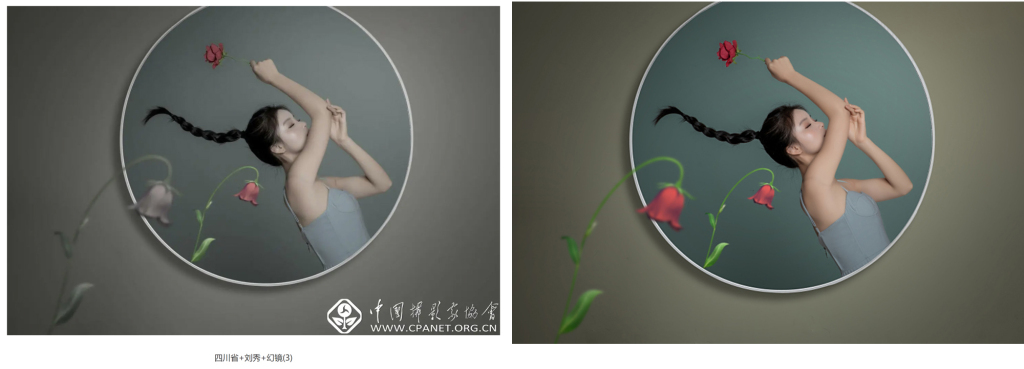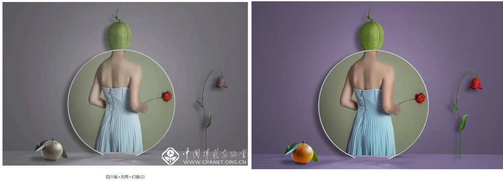 左图:《幻镜》系列之一,刘秀 作品。图片来源:中国摄影家协会官网。右图:《无相》系列之一,蒋燕秋 作品。图片来源:第15届上海市摄影艺术展览
