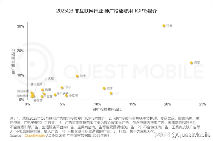 淘宝的硬广投入呈现明显收缩,并将预算向内容营销、社交种草转移;美团外卖则将投放重心集中在美团主品牌,强化整体品牌价值。