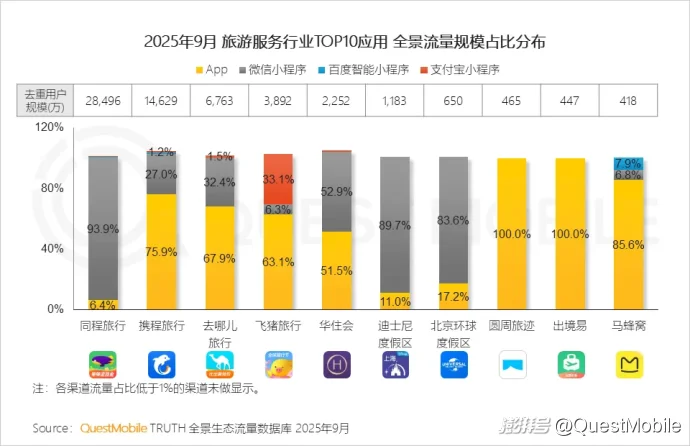 3.2 各大旅游平台通过多渠道布局获取流量,圆周轨迹、出境易等旅游规划和出境游工具平台也进入TOP行列
