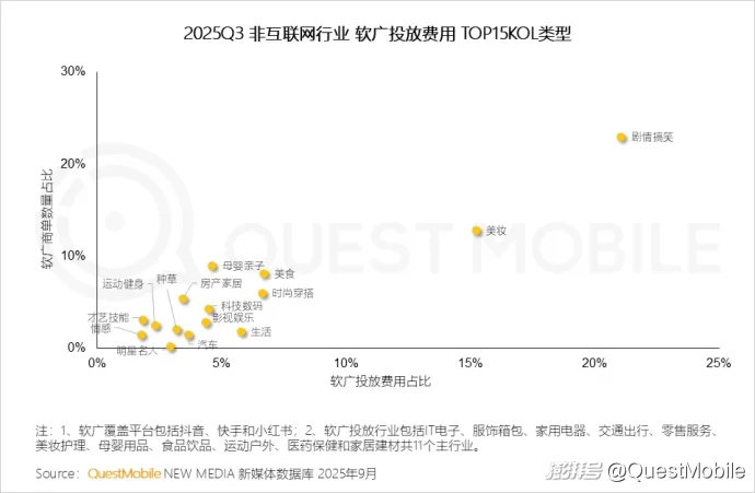 Ⅴ.对于典型消费行业,剧情搞笑类KOL是当前品牌软广投放的集中阵地,同时,美妆、母婴等品牌软广依赖于强效果展示与种草,其垂直领域内容类型依然是价值赛道