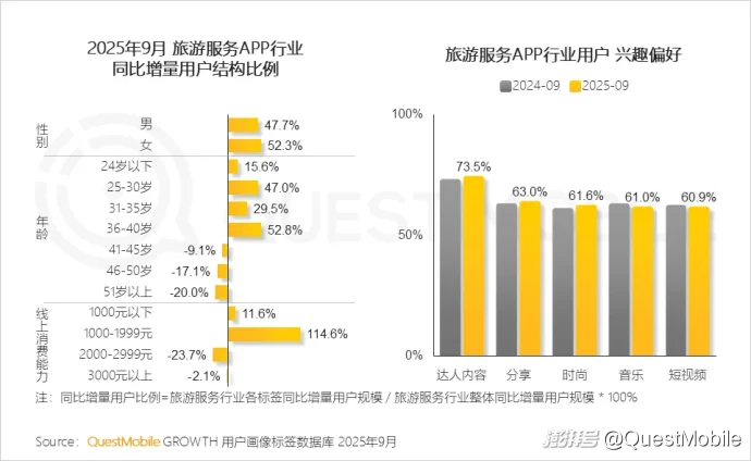 3.3 旅游服务行业年轻人群比例增长显著,也是大家偏向自主旅游出行的重要原因,他们对于达人内容、分享等意向在进一步提升