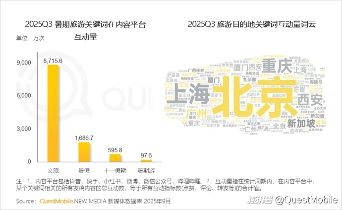 从旅游目的地讨论互动量上看,国内一线城市稳坐榜首,境外与小众目的地百花齐放,从城市风情到自然风光皆有涉及。