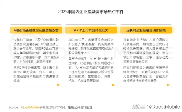 1.1 2025年资本市场活力彰显,A股市场新股数量及融资额双双增长,港交所持续优化上市规则, “A+H”上市掀起热潮,投资市场整体用户参与度提升,互联网企业为未来技术投入储备资金