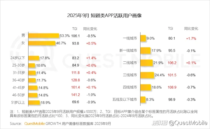 Ⅲ. 短剧正打破圈层界限,31-50岁为短剧主要受众群体,更多30岁以下年轻用户及一二线城市用户对短剧的兴趣正在上升