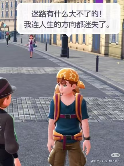 但无论如何,这款历经近三十年,通过各种形式完成跨媒介叙事的“世界第一IP”,在主动凸显与遮蔽之间,构建了一个庞大的数据库世界。在这里,有代表着创作者意志的主流叙事,也有着相当多可协商的暧昧地带。或许正如这个颇为有趣的现象所表明的:《Z-A》这一积极传达《宝可梦》正面观念的作品,却与其反面《幻兽帕鲁》同样在社交媒体以各种梗图出圈;如果说《幻兽帕鲁》的梗图是人们对于自身“社畜”生活的自嘲,《Z-A》则通过各种看似奇怪但好像又蕴含哲理的NPC对话截图在社交媒体上被广泛传播,被人们戏称为“查询密阿雷市民的精神状态”——这些对话散落在游戏的角落之中,并不影响主线,但充满反讽的幽默——或许正是对这个表面看起来光鲜亮丽的“宝可梦世界”报以调侃式的讽刺。不过我想,这种讽刺大抵是去攻击性的,毕竟人们对于一个充满善意的世界总还有一些希冀,虽梦幻泡影,但不忍戳破。
