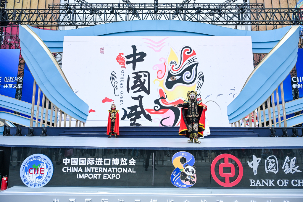 贸易让世界互通,而艺术让彼此共鸣。本届进博会人文交流活动汇聚德国、尼泊尔、匈牙利等国家友城代表,哈萨克斯坦、阿联酋等国艺术团体以及中国各省市的表演团队。涵盖中华老字号、非遗文化、国家级步行街与旅游资源等多个板块,构建人文交流与经贸合作相互促进的立体格局。其中,位于国家会展中心中央广场人文舞台的“文艺荟”连续六天以全天候、多样化的百余场演出,成为中外文化对话的交汇点。