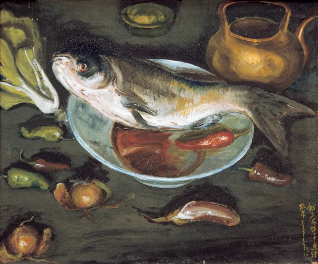 李铁夫《盘中鱼》 油画/82cm×97cm/1941年 广东美术馆藏