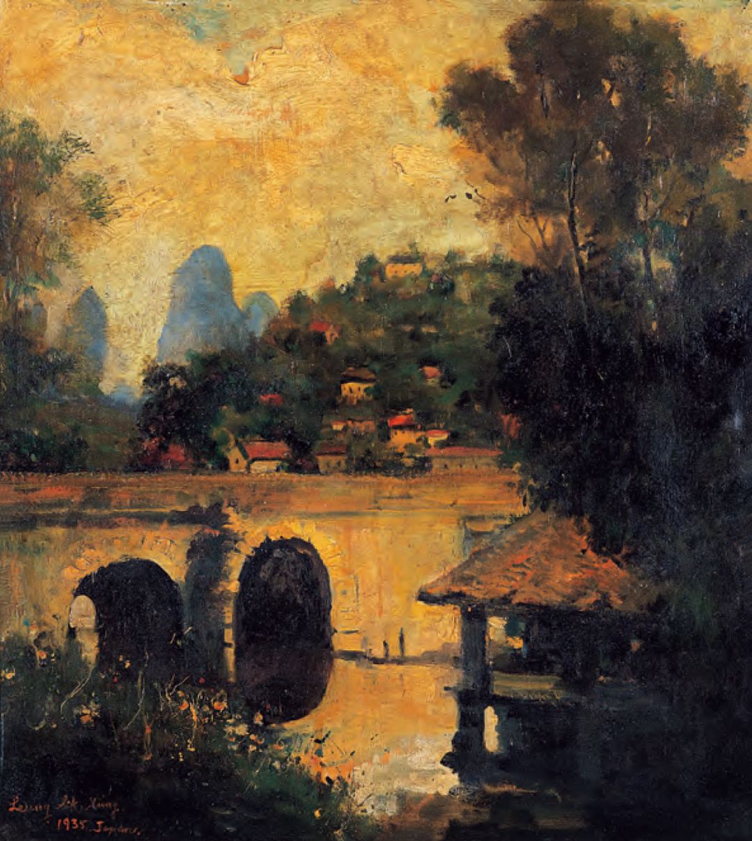 20世纪三十年代,岭南地区正处于艺术转型的重要时期。梁锡鸿作为活跃的年轻画家,既接受过西方现代绘画的训练,也深受岭南文化氛围的影响。《风景》正是在这种中西交流的语境下诞生的:一方面,画面空间与光影的处理显示出欧洲写实与印象派的痕迹;另一方面,画家注重“气韵”的氛围塑造,使作品在写实之外保有东方诗意。这件作品可以体现岭南画家在现代媒介中寻找自我表达的探索。它见证了中国油画在地方性语境中逐步扎根的过程,也折射出20世纪30年代岭南艺术家在“传统与现代”之间所作的创造性调和。