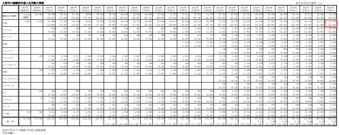 - 网传“大阪每六人中有一人就是中国人”的说法与事实不符。根据日本官方数据,大阪府在留中国人占比约 1.05%,大阪市登记中国居民占比约 1.85%。