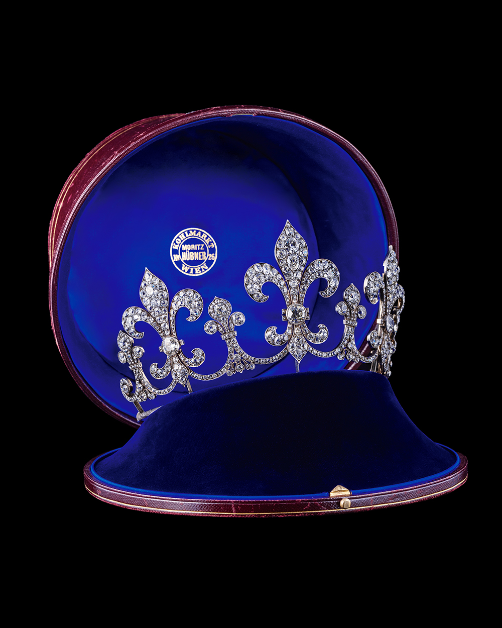 这顶冠冕传承自波旁家族,曾属于帕尔马王妃玛丽亚·安娜(Maria Anna),可能是其丈夫埃利亚(Elias)王子送给她的礼物。