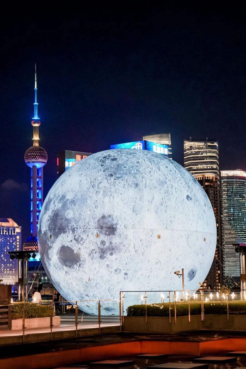 外滩金融中心南区五楼露台,一轮直径10米的超级“月亮”升空,皎洁细腻的月色与远处陆家嘴天际线遥相呼应,成为中秋绝佳打卡地。