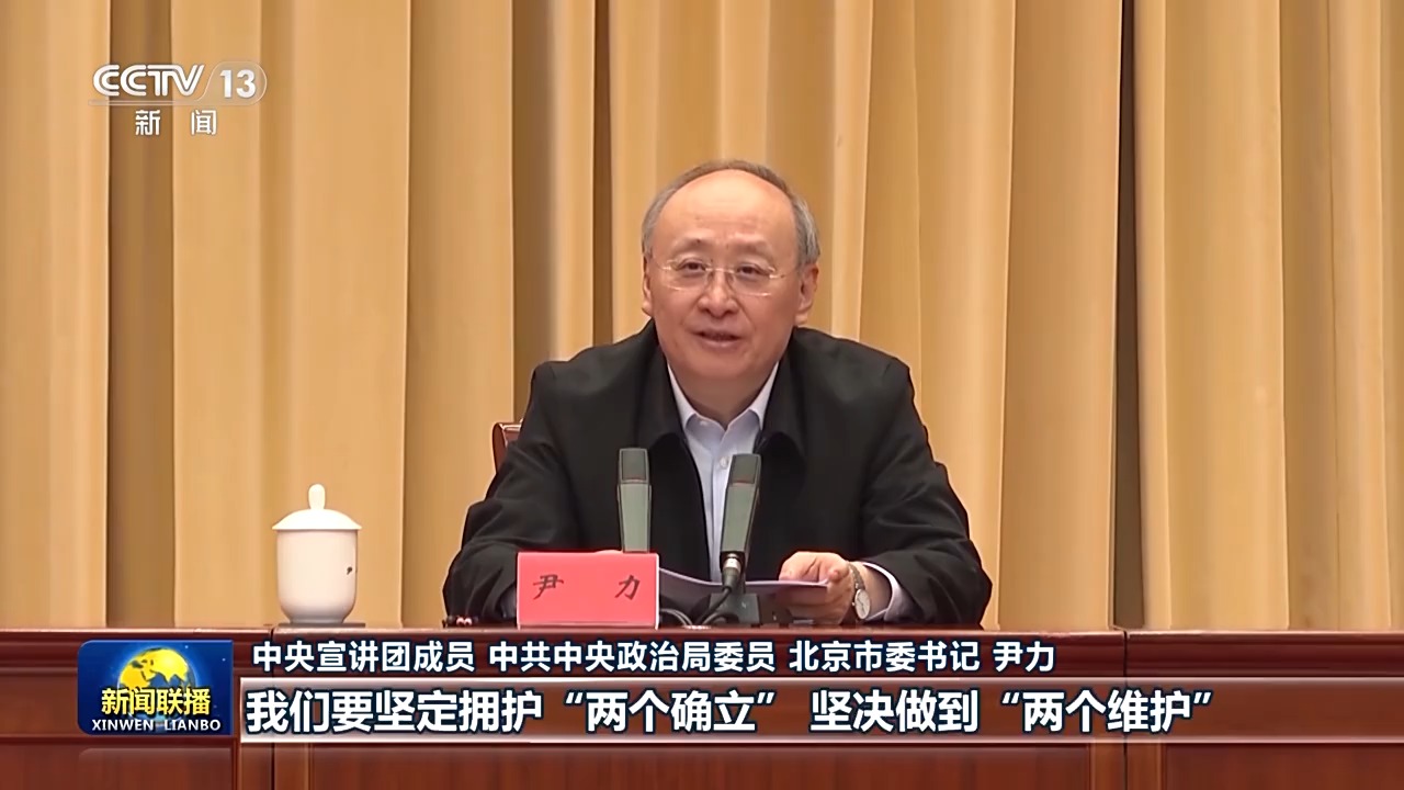 中央宣讲团成员 中共中央政治局委员 北京市委书记 尹力:我们要坚定拥护“两个确立”、坚决做到“两个维护”,深入贯彻党的二十届四中全会精神,深入贯彻习近平总书记对北京重要讲话精神,牢牢把握首都城市战略定位,坚持首善标准,履行首都职责,不断开创首都现代化建设新局面。
