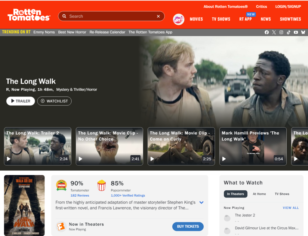 上周五,根据美国畅销书作家斯蒂芬·金(Stephen King)同名小说改编的影片《死亡竞走》(The Long Walk)在北美2845家影院上映,获得1150万美元票房。对照其在影评网站上获得的90%新鲜度和85%的爆米花指数,这个开画成绩实在不算出色。究其原因,恐怕跟斯蒂芬·金日前在网上针对共和党人查理·柯克(Charlie Kirk)刺杀事件的留言不无关系。