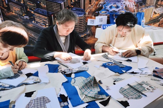 在手作区域,《海上繁花》土布拼贴画受到手作爱好者的热捧,观众们早早就来到手工区域等候。经过一块块纹样的配色比对,严丝合缝地角度调整,曼妙的土布旗袍呈现出来,有关上海棉布的历史发展以及时尚潮流故事被娓娓道来。现场展示的土布手拎包、玩偶、徽章、笔记本、冰箱贴、茶席等系列文创,亦让观众沉浸式感受非遗技艺的创造力与海派生活美学。