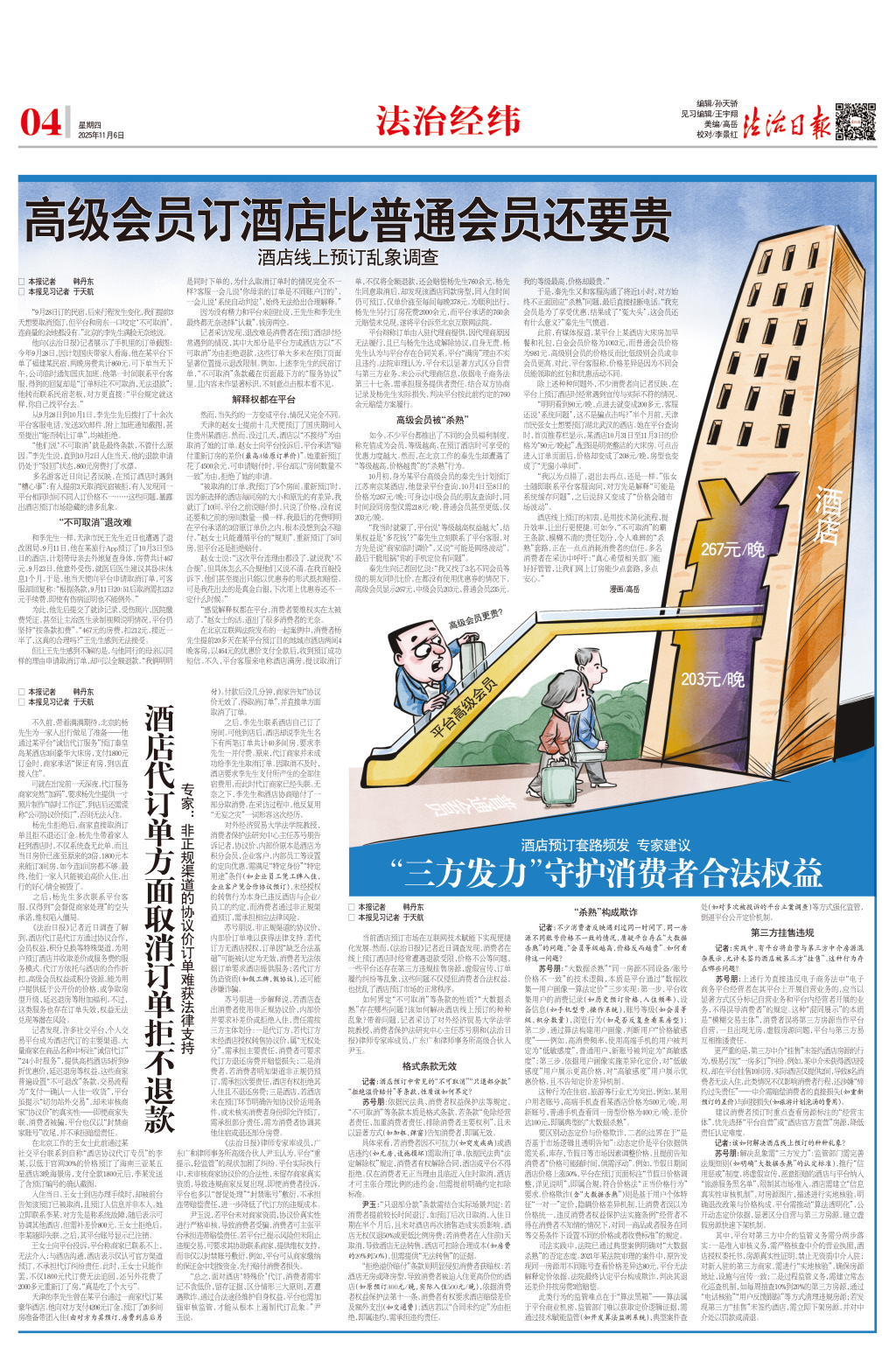 如何界定“不可取消”等条款的性质?“大数据杀熟”存在哪些问题?该如何解决酒店线上预订的种种乱象?带着问题,记者采访了对外经济贸易大学法学院教授、消费者保护法研究中心主任苏号朋和《法治日报》律师专家库成员、广东广和律师事务所高级合伙人尹玉。