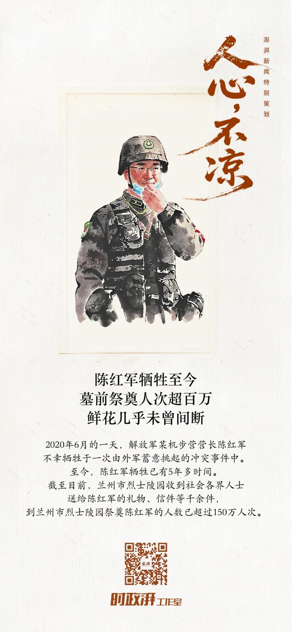 ——2020年6月的一天,33岁的解放军某机步营营长陈红军不幸牺牲于一次由外军蓄意挑起的冲突事件中。至今,陈红军牺牲已有5年多时间。截至目前,兰州市烈士陵园共收到社会各界人士送给陈红军的礼物、信件等千余件,到兰州市烈士陵园祭奠陈红军的人数已超过150万人次。