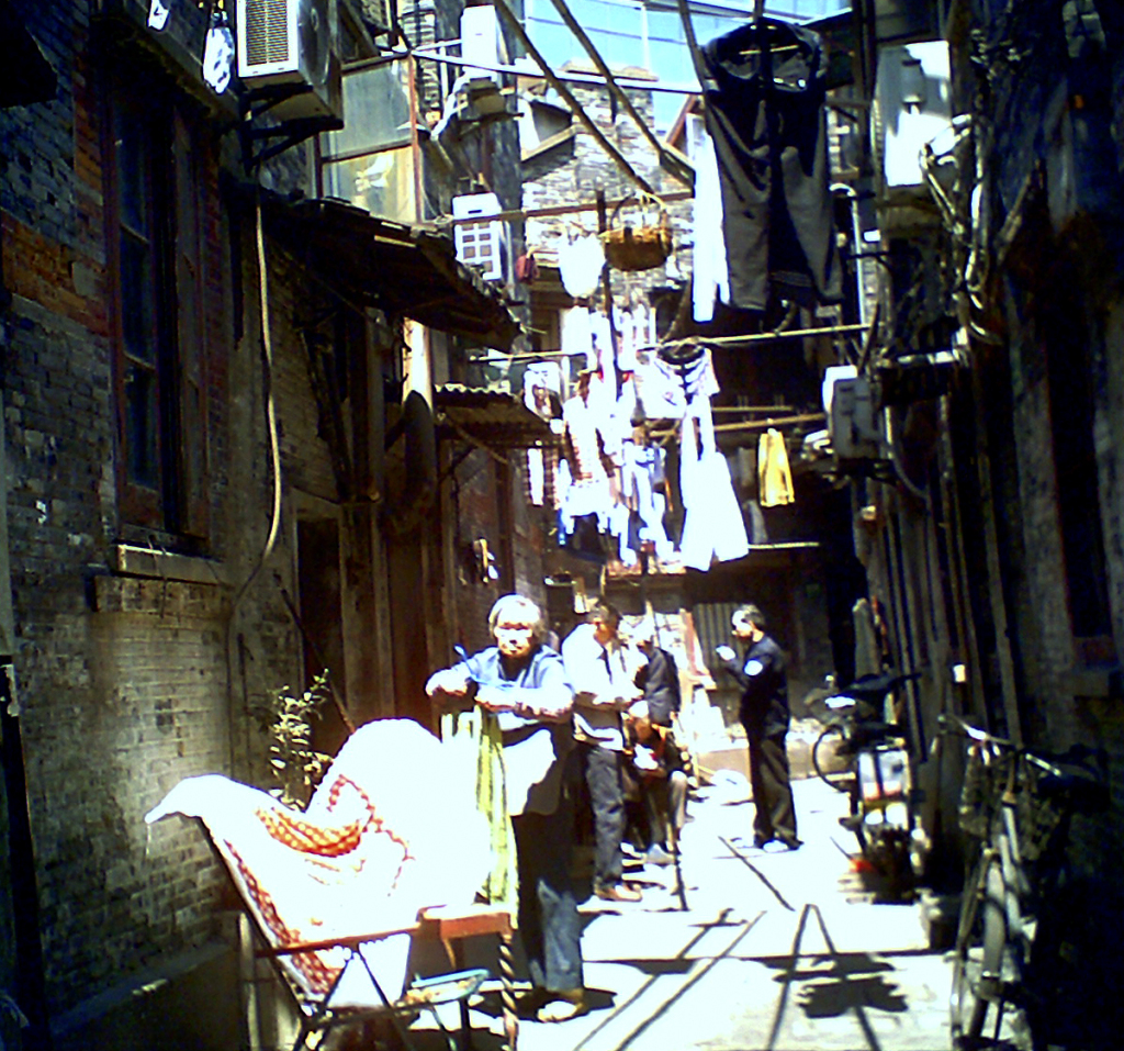 接下来我将花费一点时间说一下陆元敏在彩色摄影中的一支主线,这支主线我姑且称之为“上海质地”。所谓的“上海质地”是紧紧地与陆元敏认为有密切关系的东西,一旦出现,他将优先于其他事物被观照。“上海质地”可以是身着黑呢大衣,手戴锃亮金戒指的上海爷叔,可以是印有“上海”字样的黑色人造革包,也可以是西式栏杆的扶梯,又或是烟纸店里读报男子和他身子底下望向镜头的猫咪,露台上逗狗的女人和她身边建筑顶部山墙雕花和角落里的抽水马桶,要不就是外滩背面的一栋旧公寓后楼梯,再么是四川中路扑面而来的老大楼和阴影中的建筑工人……这些照片均指向历史语境中的那个旧上海,是伴随着摄影师一同成长、生活的事物。我以为,在这一刻,驱使陆元敏拍摄它们的动因除了拍摄本身这个动作之外,还有来自文化的自觉性在召唤他。摄影师走向它们,画家走向它们,作家也走向它们,这是上海这座城市的母题,一代代人从这里走向深处的上海。 陆元敏说,“我最喜欢张爱玲的一篇《道路以目》的文字,街上有趣的事情那可太多了!我想出门。”